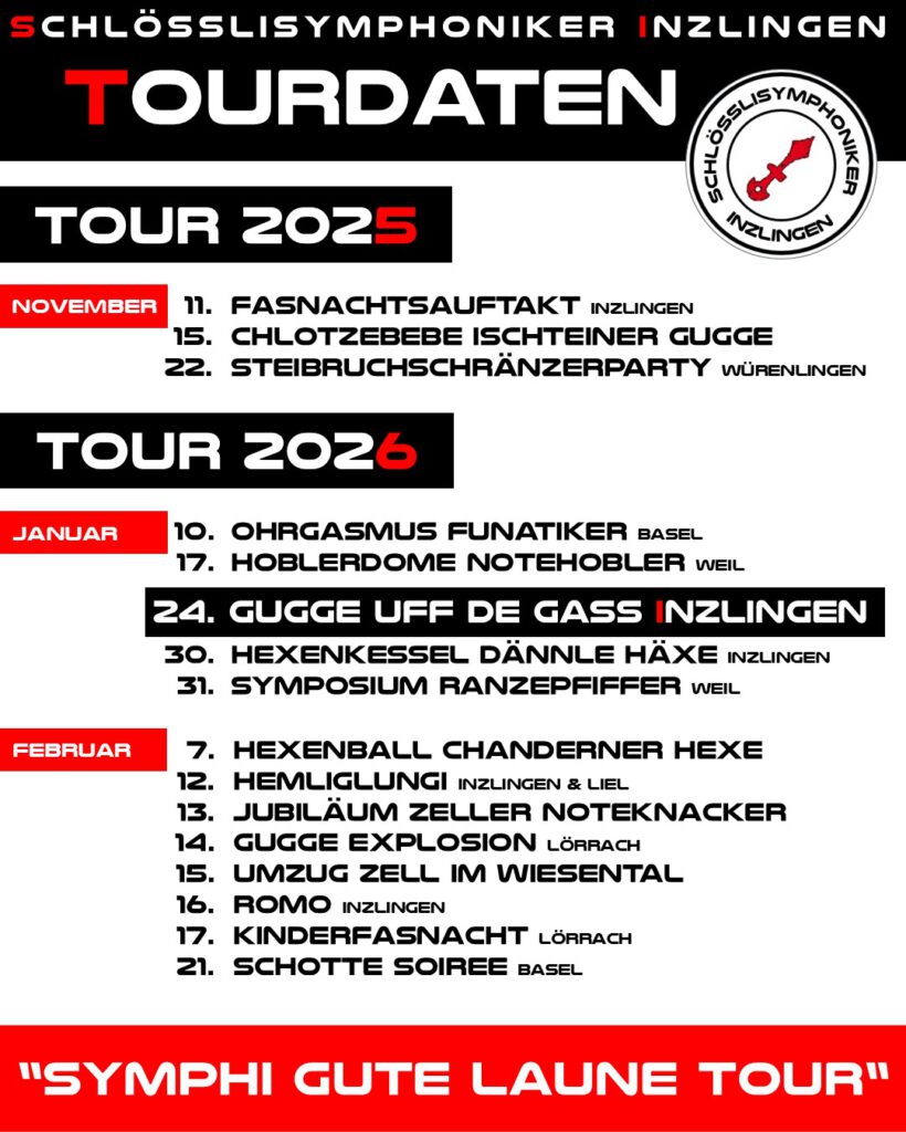 Tour 2025 / 2026FacebookInstagrammSYMPHI TOURPLAN 2025 / 2026Triff uns bei folgenden Veranstaltungen und feier mit unsVEREIN Schlösslisymphoniker Inzlingen 1990 e.V. www.symphis.de SOCIAL Instagram Facebook Whatsapp Youtube IMPRESSUM & DATENSCHUTZ -> Link Powered BY SYMPHIS